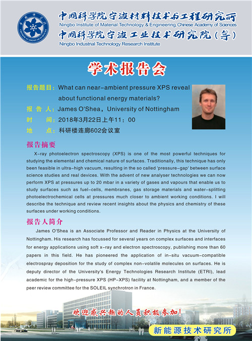 3月22日:James O'Shea:What can near-ambient pressure XPS reveal about functional energy materials? 发布:2018-03-20 点赞: 字号:小 大 打印: