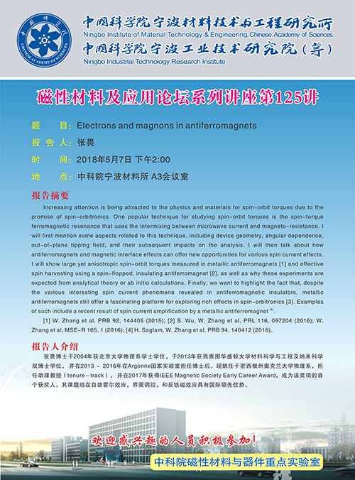 5月7日:张畏:Electrons and magnons in antiferromagnets