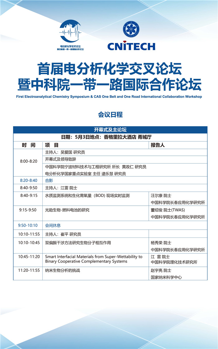 5月2-4日:首届电分析化学交叉论坛暨中科院一带一路国际合作论坛