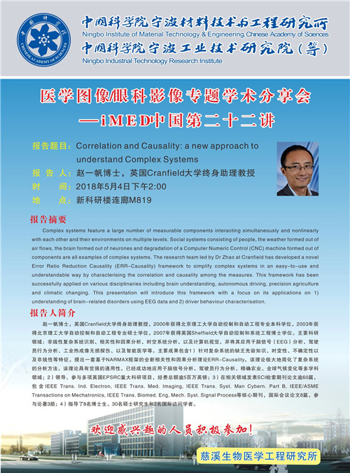 5月4日:赵一帆:Correlation and Causality: a new approach to understand Complex Systems 发布:2018-05-03 点赞: 字号:小 大 打印: