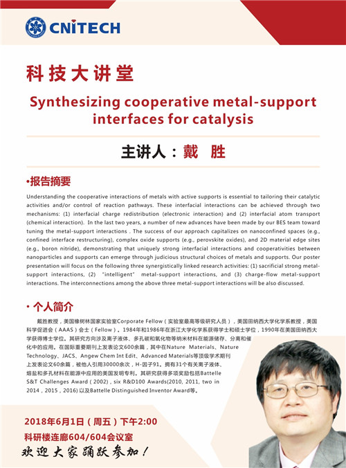 6月1日:戴胜:Synthesizing cooperative metal-support interfaces for catalysis