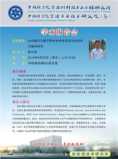 6月22日:曾凡明:GaN基LED量子阱光电特性及其光效优化方案的研究