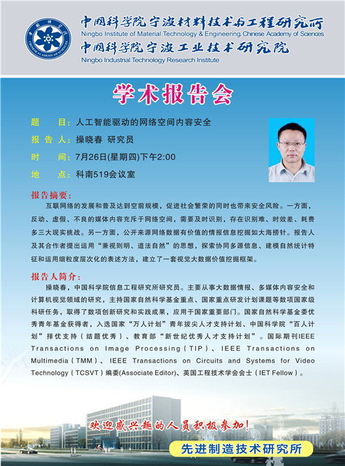 7月26日:操晓春:人工智能驱动的网络空间内容安全