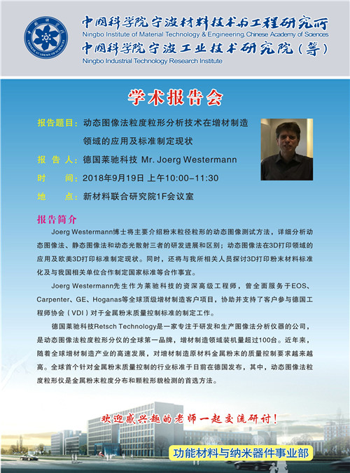 9月19日:Joerg Westermann:动态图像法粒度粒形分析技术在增材制造领域的应用及标准制定现状