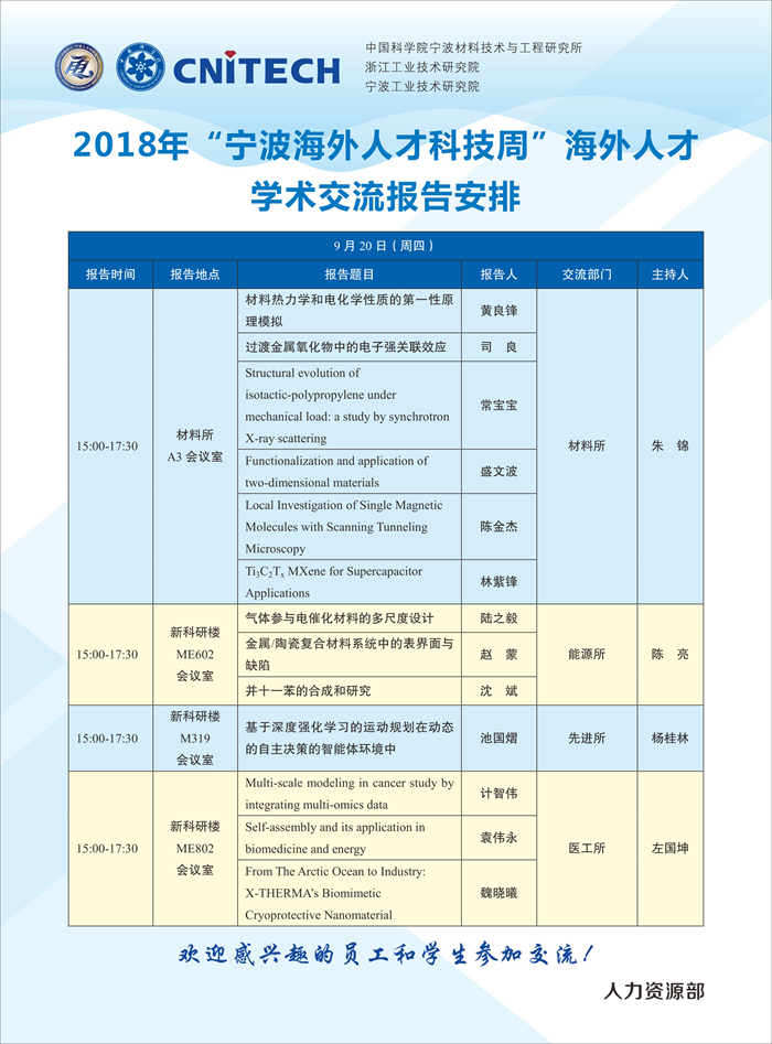 9月20日:2018年“宁波海外人才科技周”海外人才学术交流报告