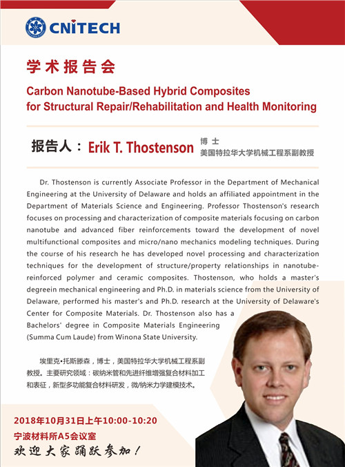10月31日:Erik T. Thostenson:Carbon Nanotube-Based Hybrid Composites for Structural Repair/Rehabilitation and Health Monitoring 发布:2018-10-31 点赞: 字号:小 大 打印: