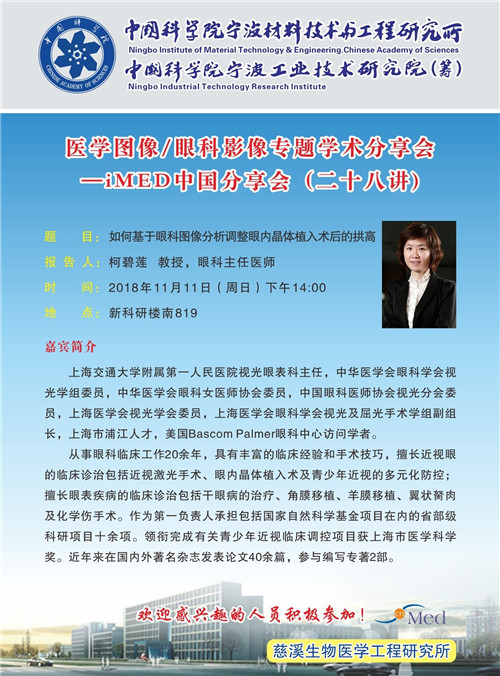 11月11日:柯碧莲:如何基于眼科图像分析调整眼内晶体植入术后的拱高