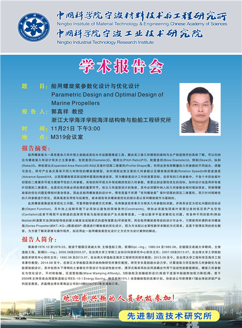11月21日:郭真祥:Parametric Design and Optimal Design of Marine Propellers