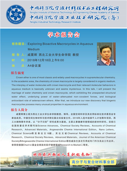 12月18日:戚震辉:Exploring Bioactive Macrocycles in Aqueous Medium