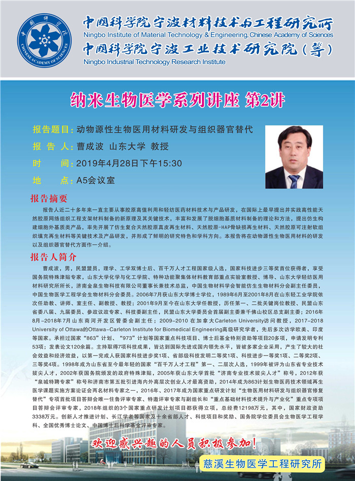 4月28日:曹成波:动物源性生物医用材料研发与组织器官替代