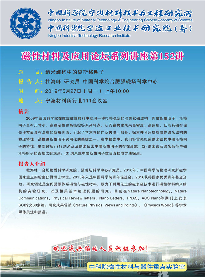 5月27日:杜海峰:纳米结构中的磁斯格明子