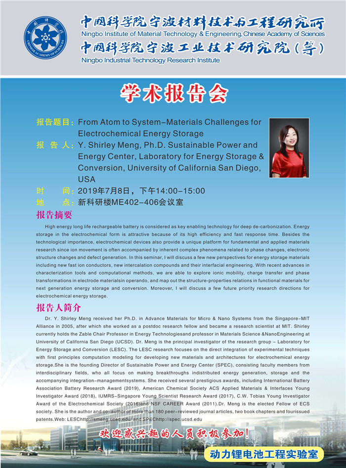 7月8日:Y. Shirley Meng:From Atom to System–Materials Challenges for Electrochemical Energy Storage 发布:2019-07-08 点赞: 字号:小 大 打印:
