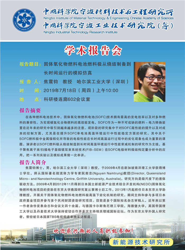 7月18日:焦震钧:固体氧化物燃料电池燃料极从烧结制备到长时间运行的模拟仿真