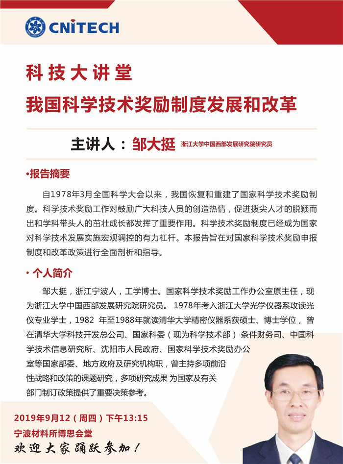 9月12日:科技大讲堂:邹大挺:我国科学技术奖励制度发展与改革