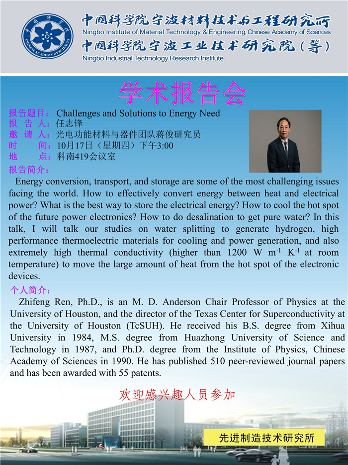 10月17日:任志锋:Challenges and Solutions to Energy Need