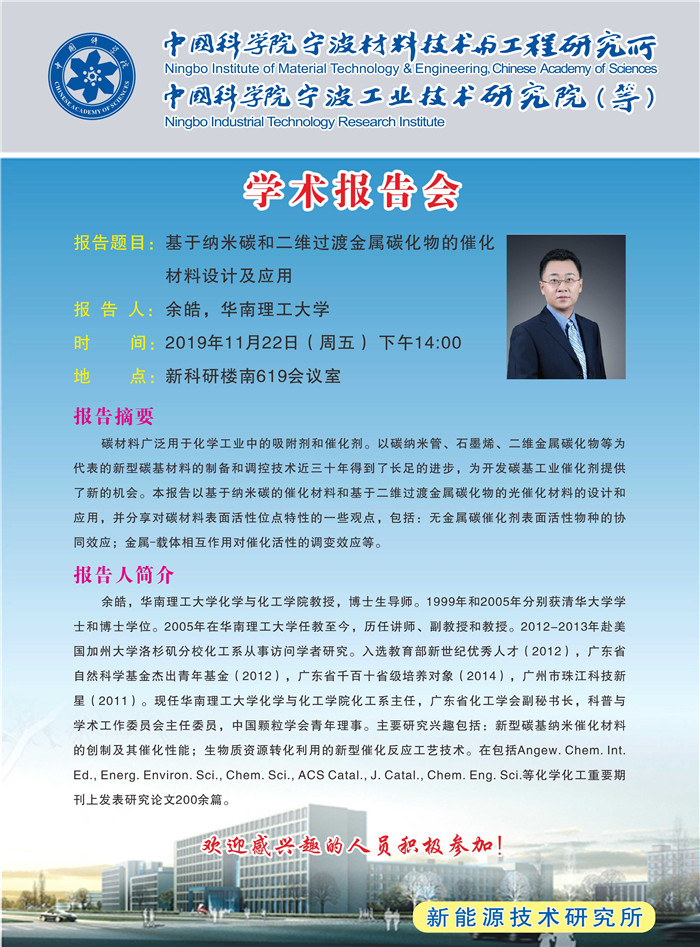 11月22日:余皓:基于纳米碳和二维过渡金属碳化物的催化材料设计及应用