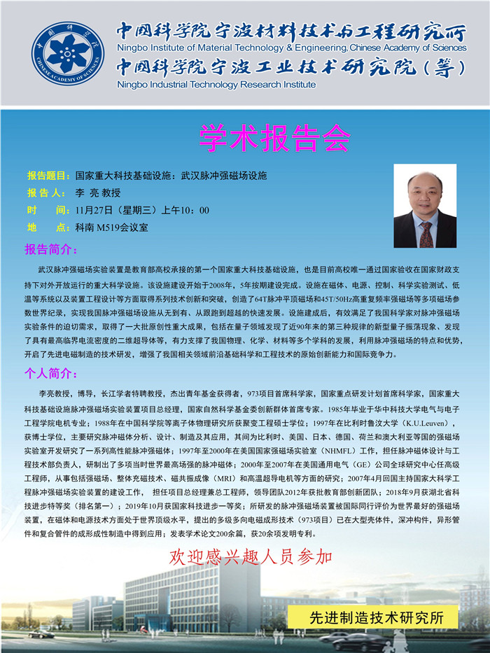 11月27日:李亮:国家重大科技基础设施:武汉脉冲强磁场设施