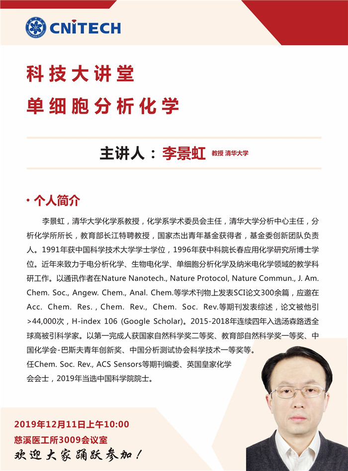12月11日:科技大讲堂:李景虹:单细胞分析化学