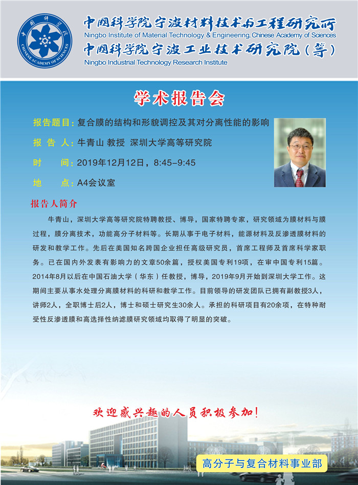 12月12日:牛青山:复合膜的结构和形貌调控及其对分离性能的影响