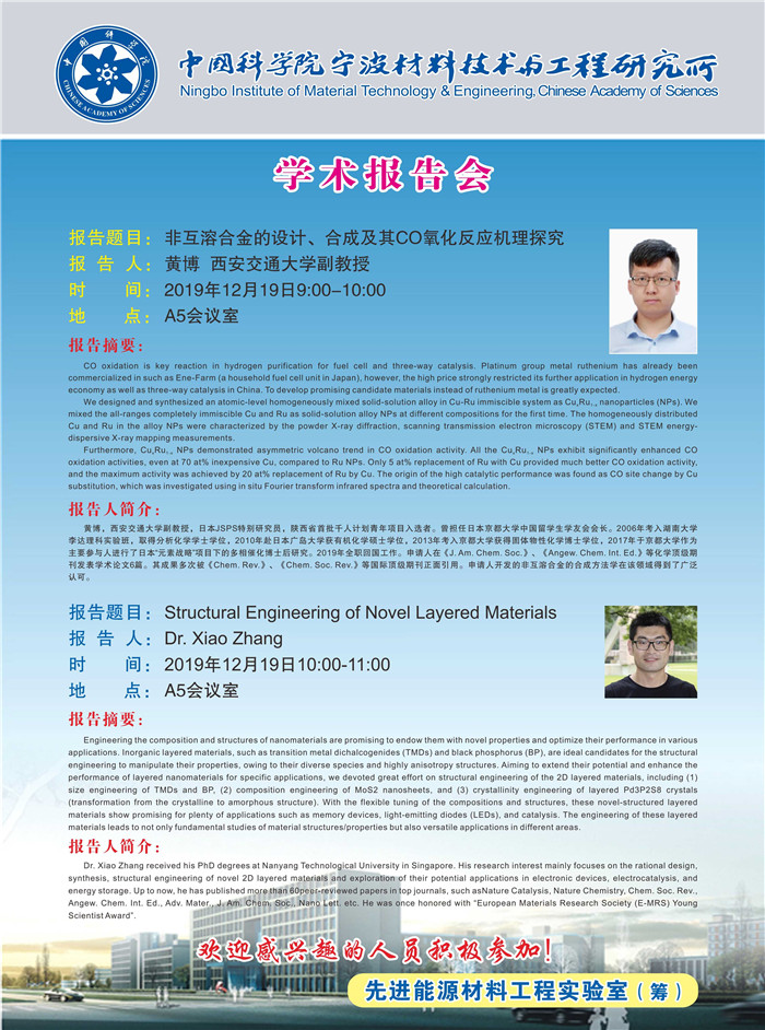 12月19日:黄博:非互溶合金的设计、合成及其CO氧化反应机理探究