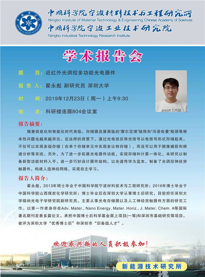 12月23日:翟永彪:近红外光调控多功能光电器件