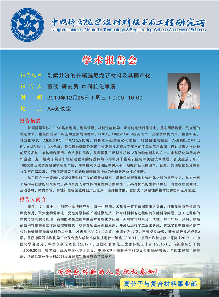 12月25日:董侠:刚柔并济的长碳链尼龙新材料及其国产化