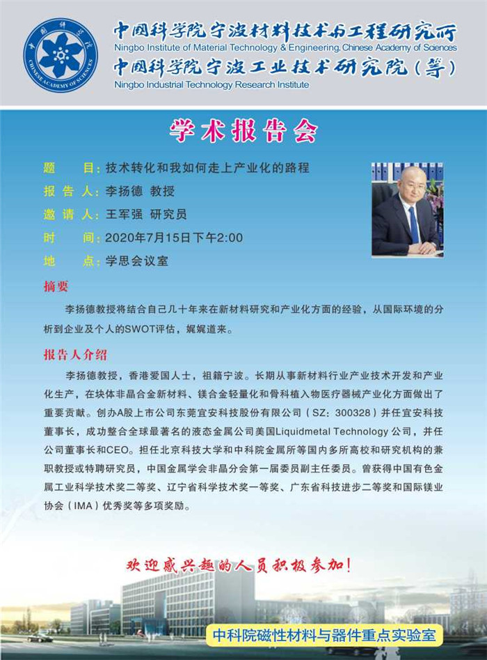 7月15日:李扬德:技术转化和我如何走上产业化的路程