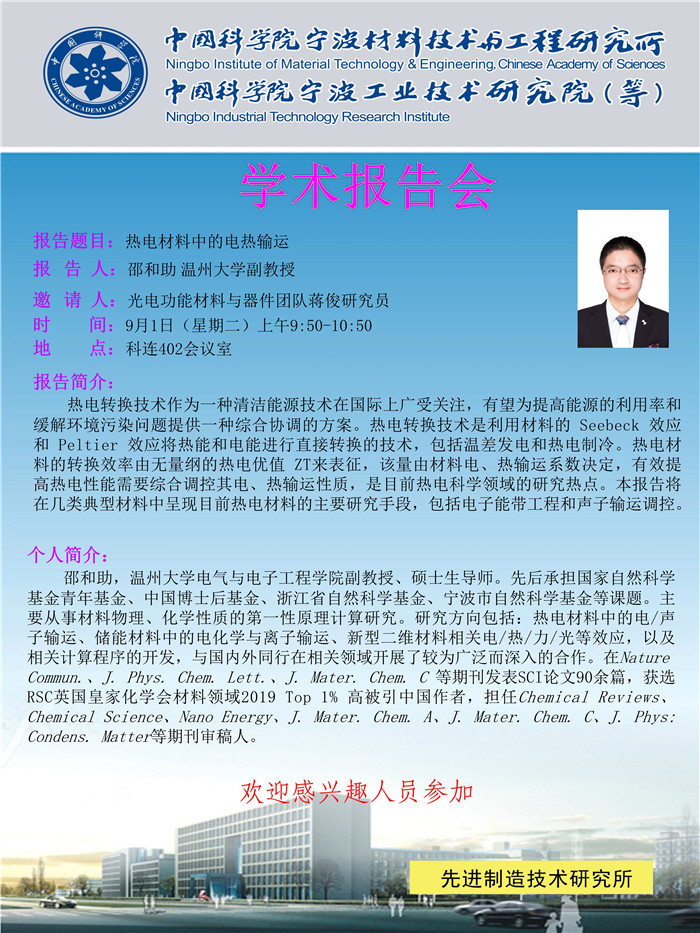 9月1日:邵和助:热电材料中的热电输运