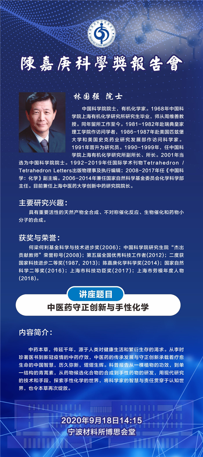 9月18日:林国强:中医守正创新与手性化学