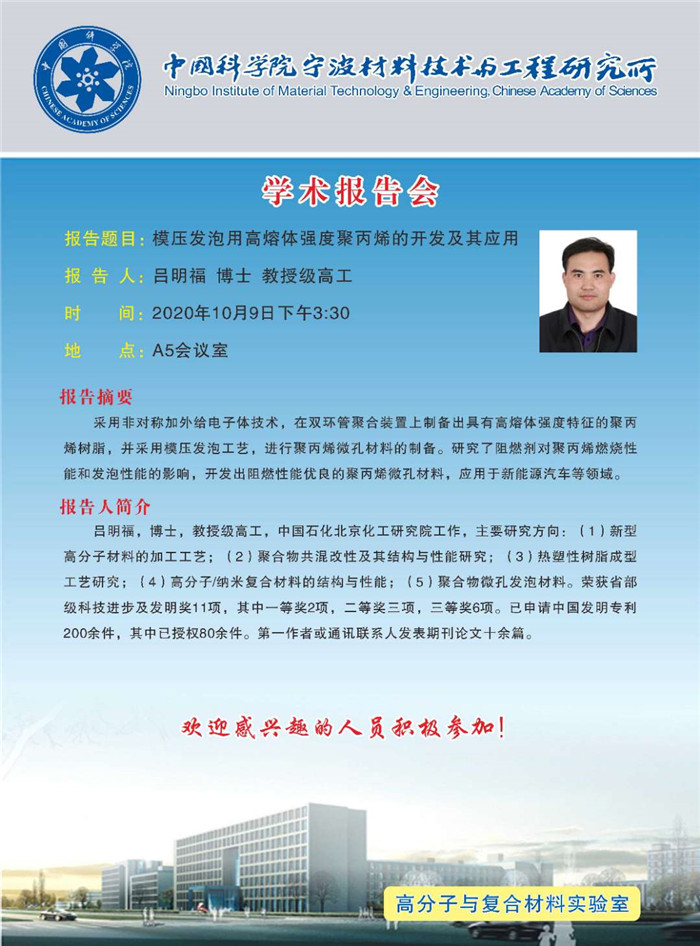 10月9日:吕明福:模压发泡用高熔体强度聚丙烯的开发及其应用