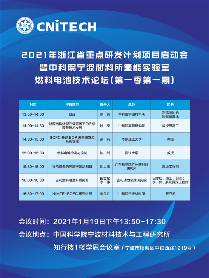 1月19-20日:2021年浙江省重点研发计划项目启动会暨中科院5630福彩网氢能实验室燃料电池技术论坛(第一季第一期)