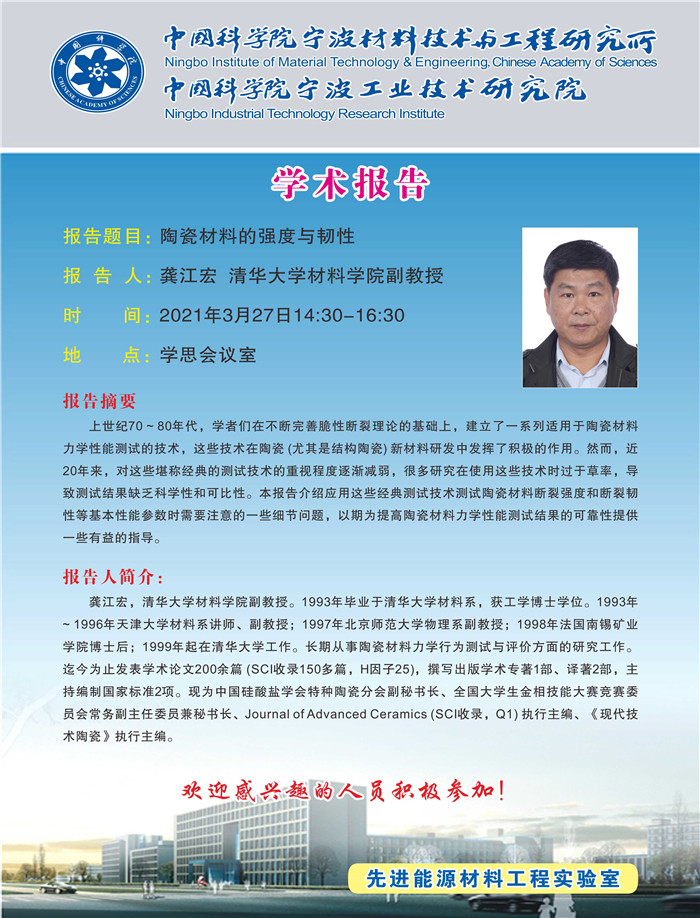 3月27日:龚江宏:陶瓷材料的强度与韧性