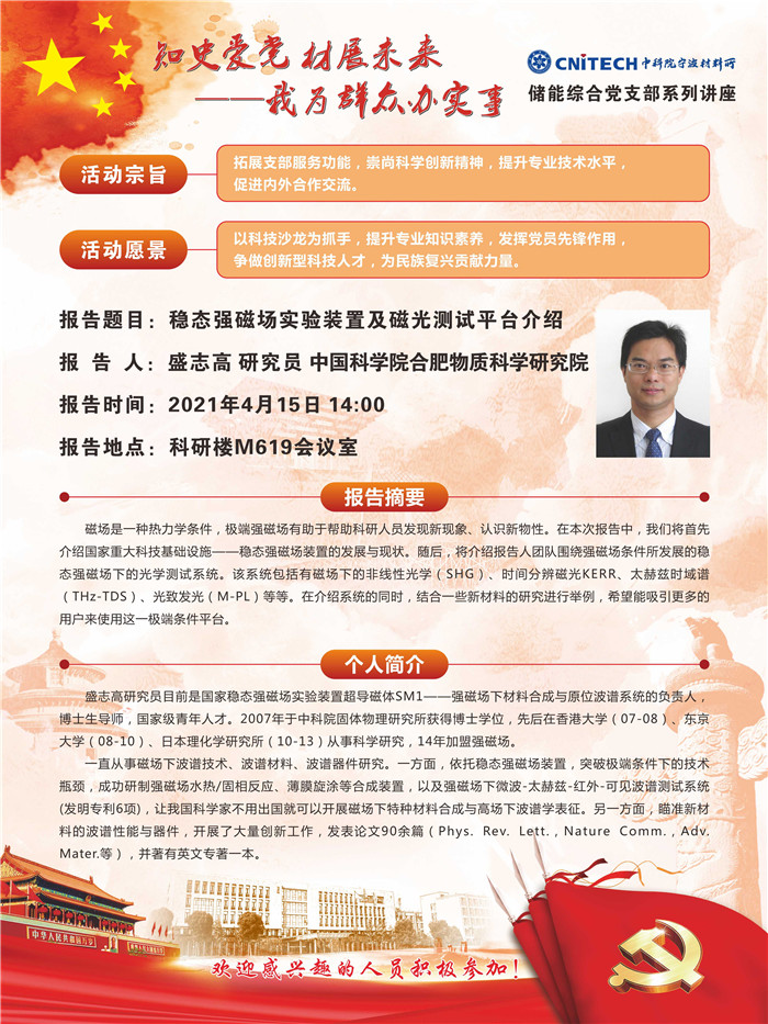 4月15日:盛志高:稳态强磁场实验装置及磁光测试平台介绍