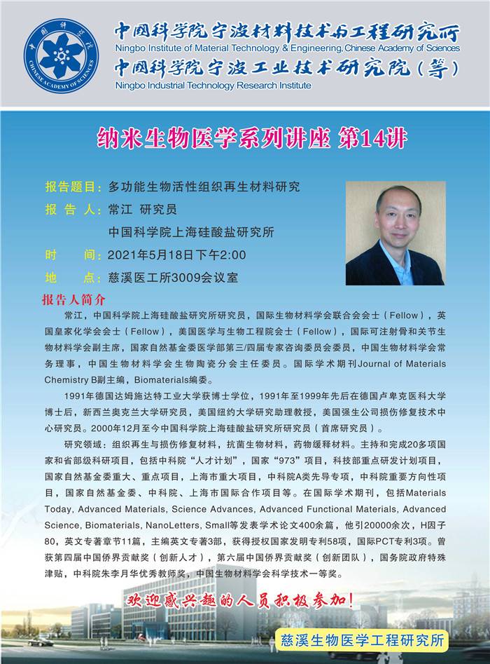 5月18日:常江:多功能生物活性组织再生材料研究
