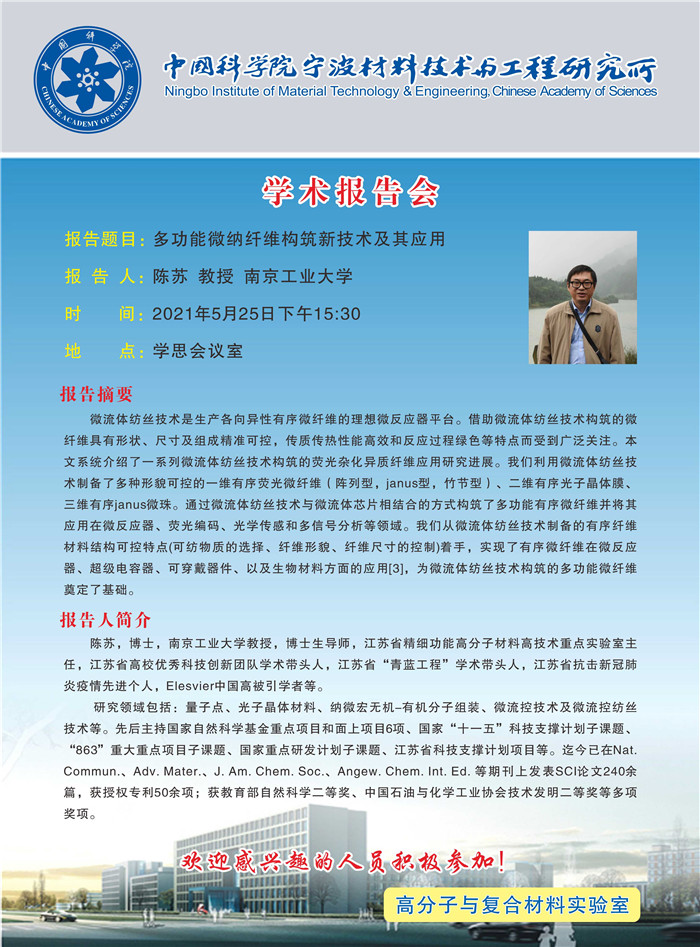 5月25日:陈苏:多功能微纳纤维构筑新技术及其应用