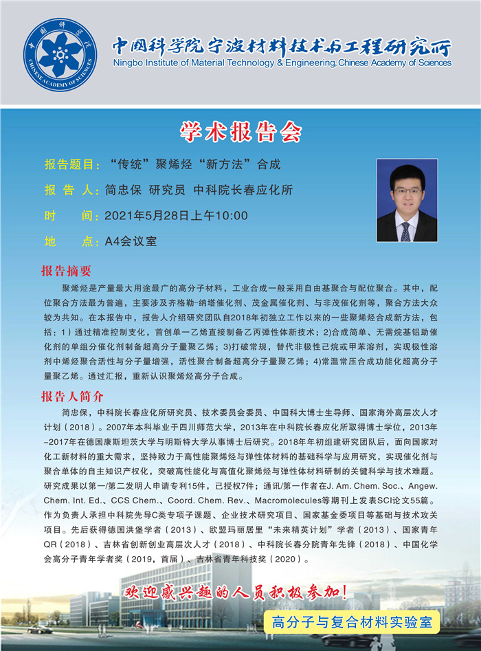 5月28日:简忠保:“传统”聚烯烃“新方法”合成