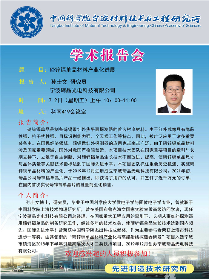 7月2日:孙士文:碲锌镉单晶材料产业化进展