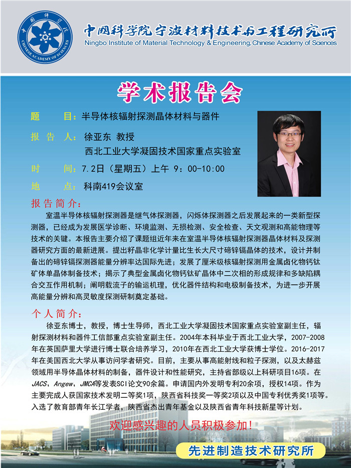 7月2日:徐亚东:半导体核辐射探测晶体材料与器件