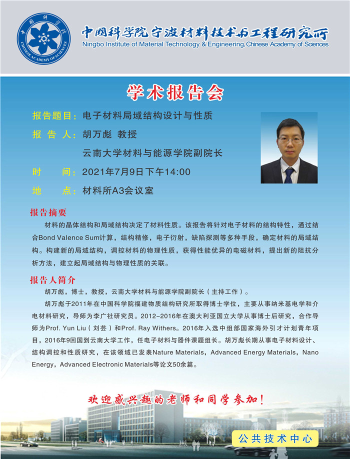 7月9日:胡万彪:电子材料局域结构设计与性质