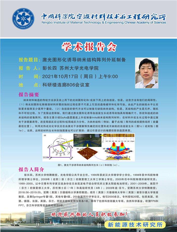 10月17日:彭长四:激光图形化诱导纳米结构阵列外延制备