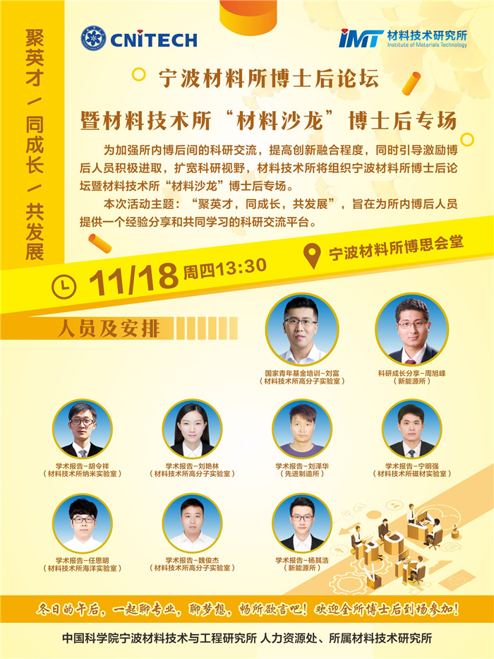 11月18日:5630福彩网博士后论坛暨所属材料技术所“材料沙龙”博士后专场