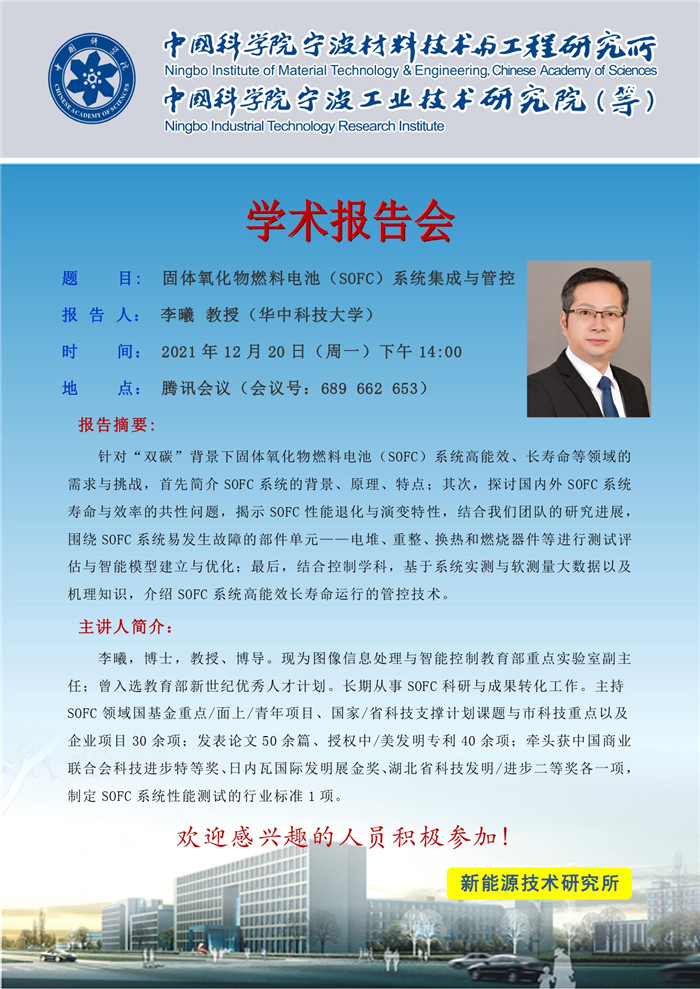 12月20日:李曦:固体氧化物燃料电池(SOFC)系统集成与管控