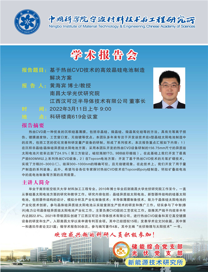 3月11日:黄海宾:基于热丝CVD技术的高效晶硅电池制造解决方案