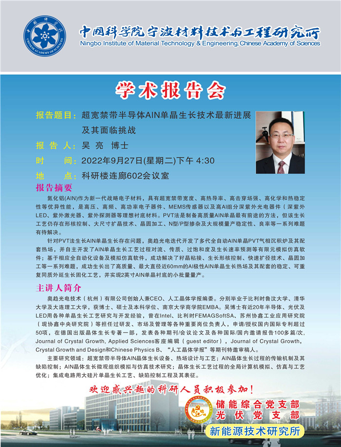 9月27日:吴亮:超宽禁带半导体AlN单晶生长技术最新进展及其面临挑战