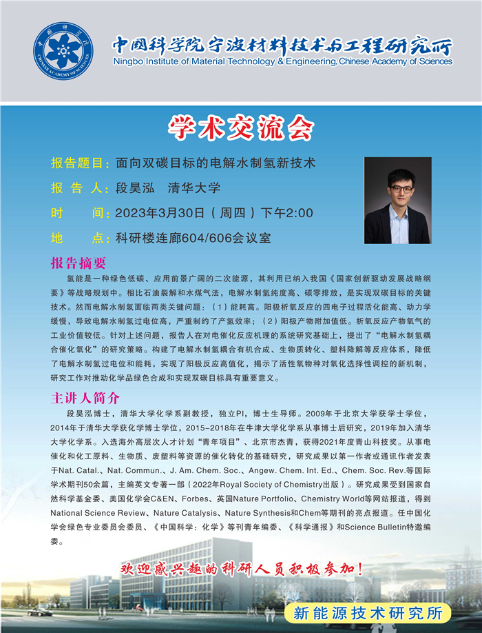 3月30日:段昊泓:面向双碳目标的电解水制氢新技术