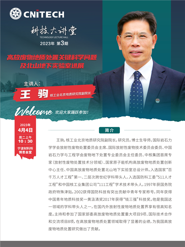 4月4日:王驹:高放废物地质处置关键科学问题及北山地下实验室进展