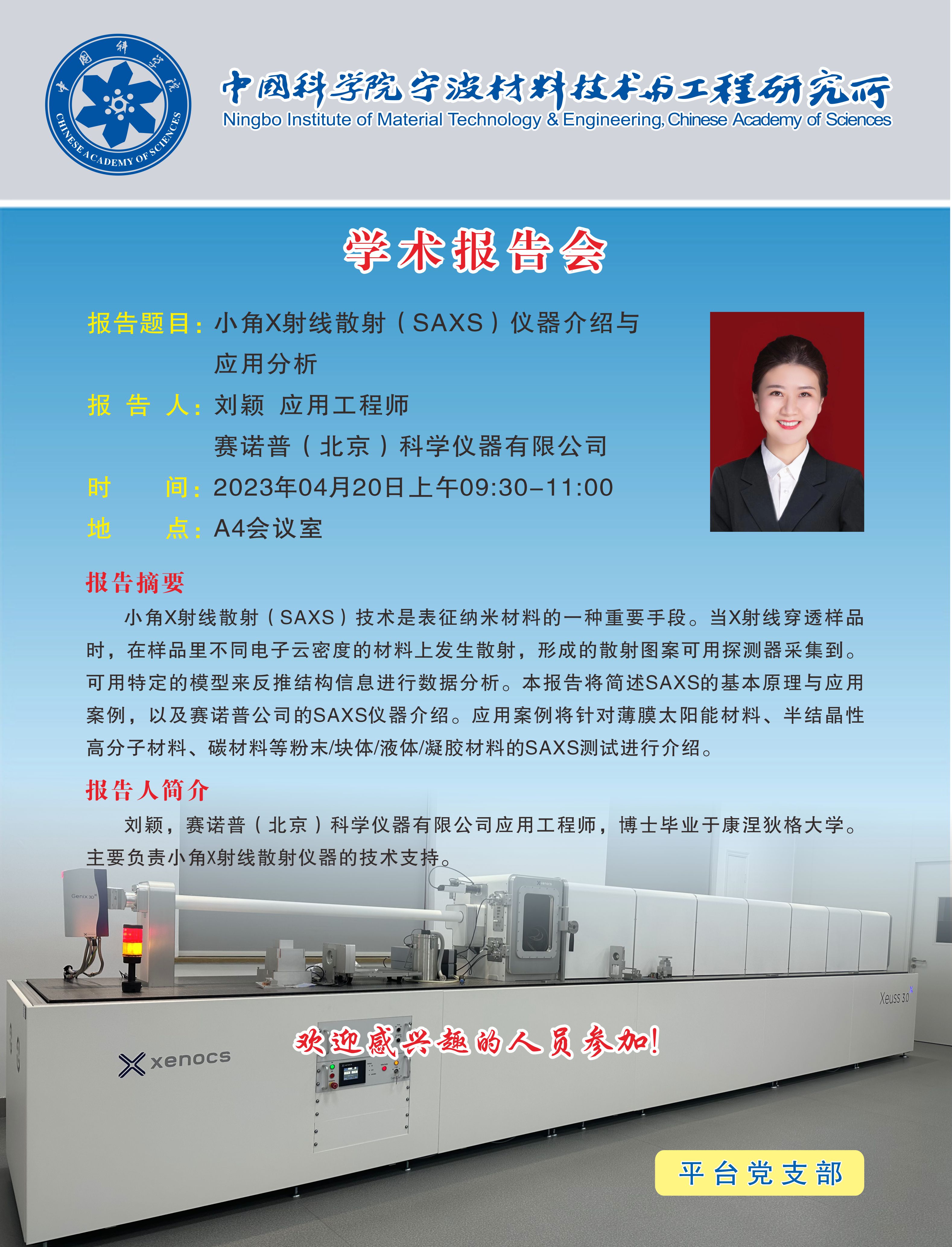 4月20日:刘颖:小角X射线散射(SAXS)仪器介绍与应用分析