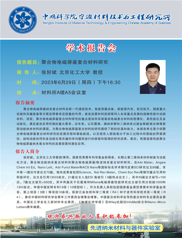 6月29日:张好斌:聚合物电磁屏蔽复合材料研究