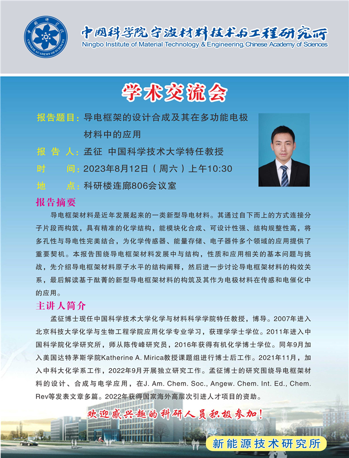 8月12日:孟征:导电框架的设计合成及其在多功能电极材料中的应用