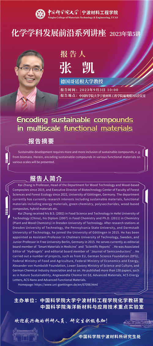 9月3日:张凯:Encoding sustainable compounds in multiscale functional materials 发布:2023-09-03 点赞: 字号:小 大 打印: